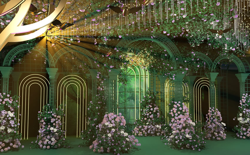 婚礼堂设计是一种专门用于举办婚礼和其他相关活动的室内设计。以下是一些关于婚礼堂设计的建议: